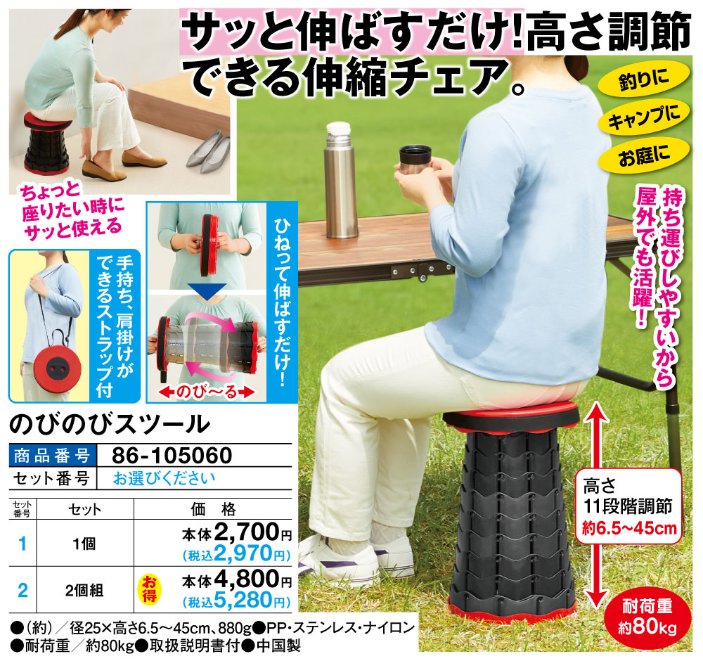 サッと伸ばすだけ!高さ調節できる伸縮チェア!