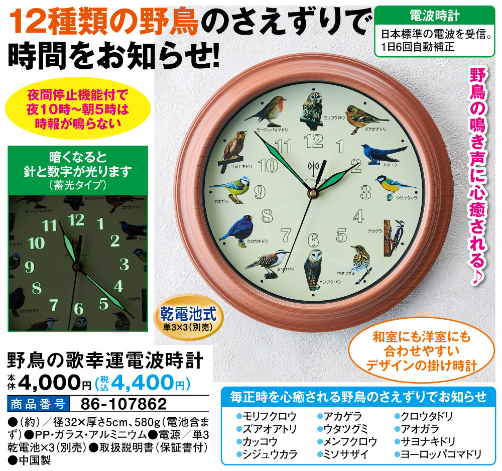 夜間停止機能付で夜10時~朝5時は時報が鳴らない