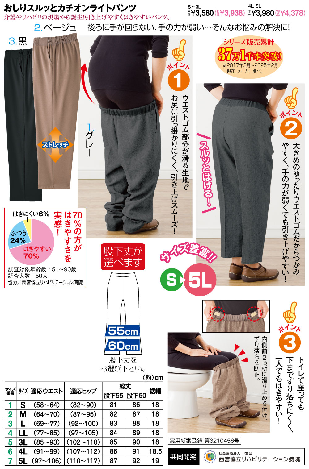 介護やリハビリの現場から誕生!引き上げやすくはきやすいパンツ。