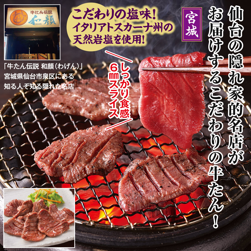 こだわりの塩味! イタリアトスカーナ州の天然岩塩を使用! 牛たんといえば仙台!その仙台で知る人ぞ知る名店「牛たん伝説 和顔(わげん)」の熟成牛たんです。