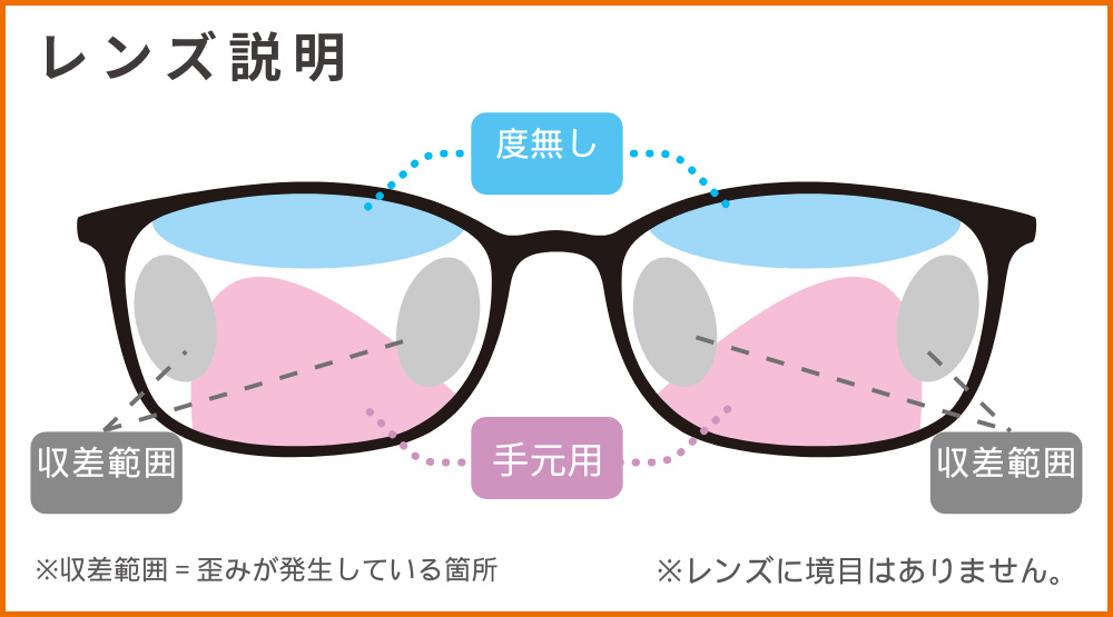 ※遠近レンズの設計上、レンズ両側部び収差範囲があり、その部分で見ると、ゆれ・歪みを感じます。 ※室内での使用を前提とした製品です。屋外での活動や車の運転などでは使用しないでください。