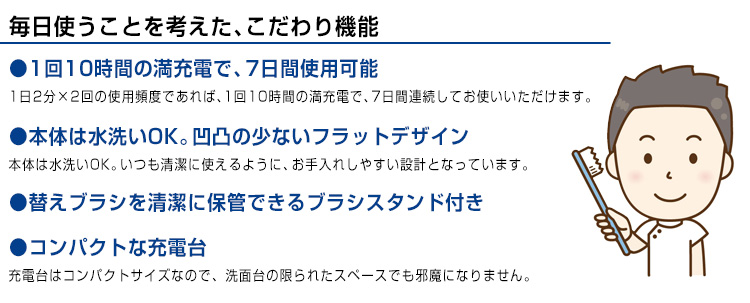 ●一度の充電で10日間使用できます。満充電で40分使用可(1日4分使用した場合)