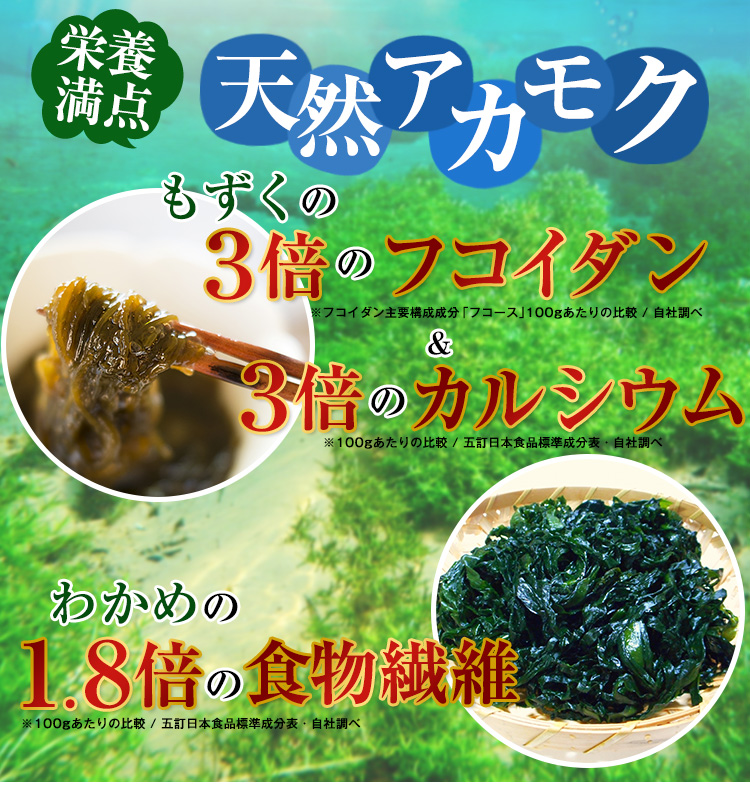 ねばねば成分である「フコイダン※1」の含有量がもずくの3倍! 食物繊維はワカメの1.8倍! カルシウムはもずくの3倍! ※1:フコース量として