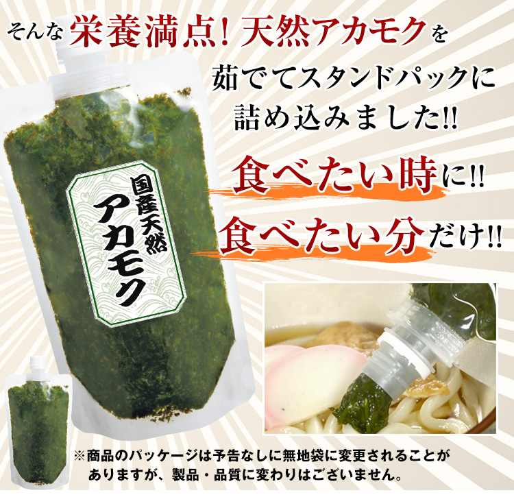 ●セット内容/250g×4袋 ●賞味期限/製造日から冷凍1年 ●加工地/日本 ●原材料/アカモク(国産) ●特定原材料等 /なし