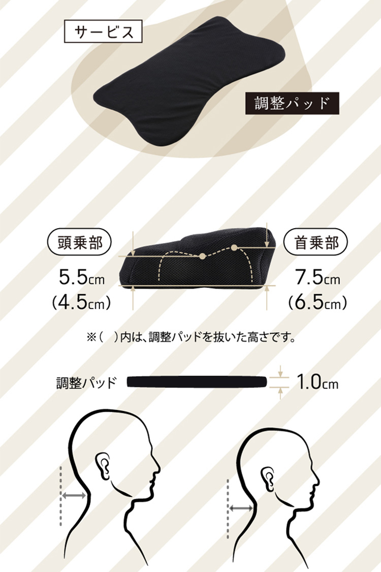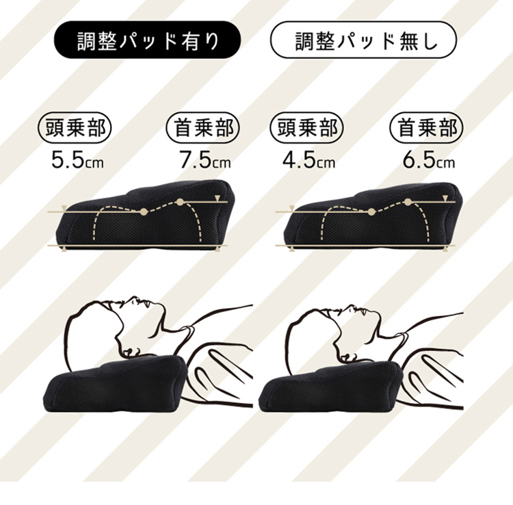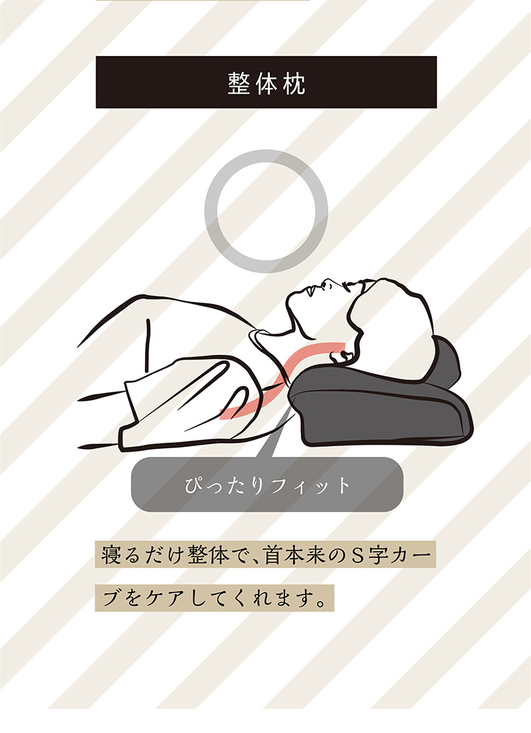 人気整体サロン「ジールファイン」の整体師・齋藤智司さん開発の枕。 ・スマホやPCで慢性的なストレートネックに悩む方、肩こり・首こりにお悩みの方にオススメ!! ・独自の3D形状と1cmの高さ調整パッド、そして抜群の通気性を誇る素材でトータルケアできる枕です。 ・寝るだけ整体で、首本来のS字カーブをケアしてくれます。 【高さ】 首:約7.5cm、頭:約5.5cm(高さ調節シートを抜くと1cm低くできます)
