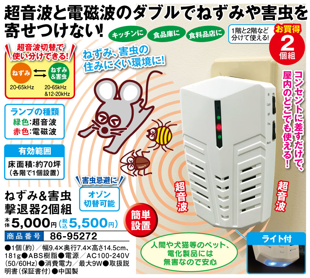 超音波と電磁波のダブルでねずみや害虫を寄せつけない!