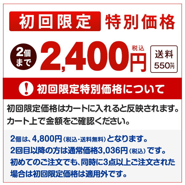 新聞・ラジオで案内しているプレゼントはお電話注文のみのキャンペーンです。 <ご購入に関するお願いとご注意> 初回限定特別価格の商品は1世帯につき1回(2個)限りのため、お届け先はご自宅のみとさせていただきます。 この商品は、定期購入回数の縛りはありません。マイページにてスキップや変更・解約が可能です。 ※ログインして購入手続きへおすすみください。 ※WEB会員登録がまだのお客様は会員登録後ご購入ください。