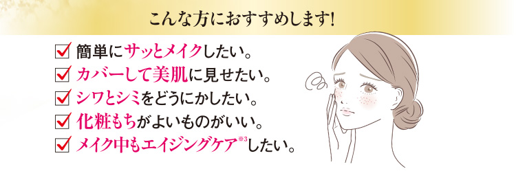 シワ・シミ・乾燥・肌荒れにこれひとつ! シワ改善&美白ケア薬用ファンデーション! サッとひと塗りで美肌! ハリ・つや・透明感!