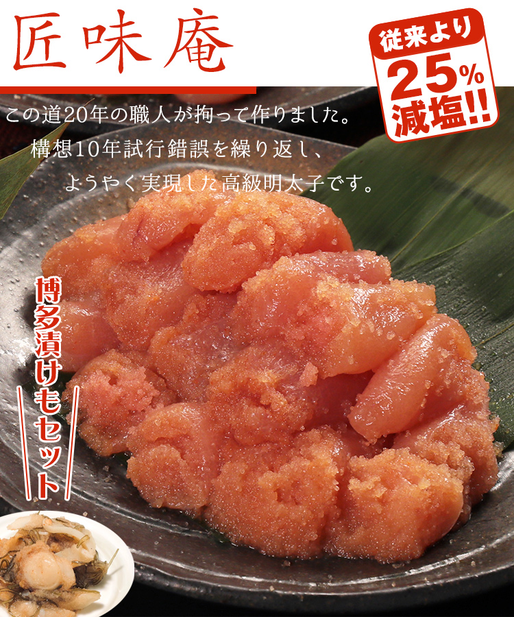 ●セット内容/匠味庵明太子(切れ子)300g×4袋、博多漬け150g×1袋