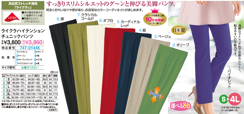 すっきりスリムシルエットのグ~ンと伸びる美脚パンツ!