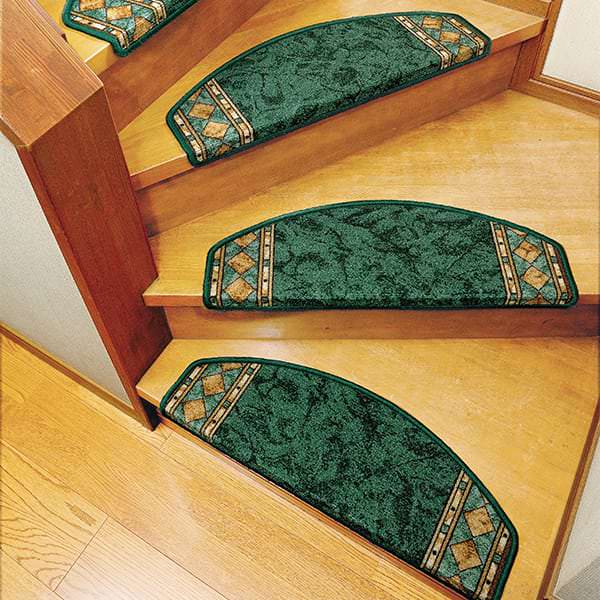 カーペット生地を使った優雅な階段マット! 半円形でらせん階段にもぴったり! 裏面ゴムで弾力性があり、ひざにも優しい! 足音も響きにくい。 ●折り曲げ付 ●裏面に両面テープ付(2ヵ所)