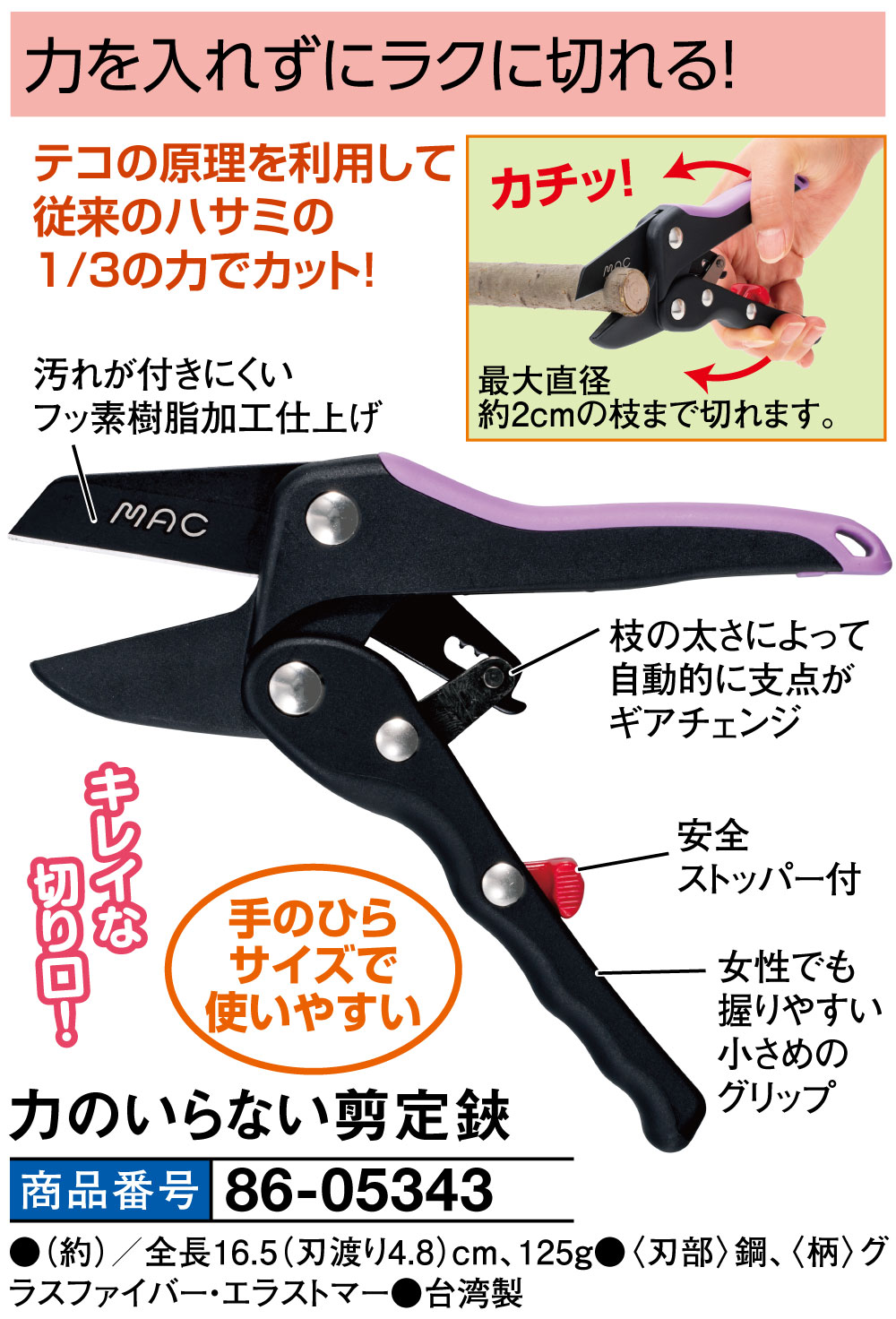 女性でも力を入れずにラクに切れる!キレイな切り口で剪定に最適!