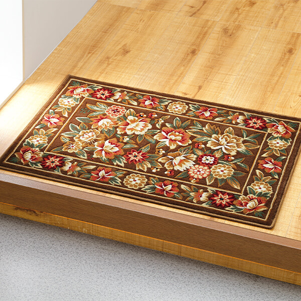 まるでシルク!華やかにお客様をお出迎え! シルク調ならではのツヤ感とやわらかな手ざわり。 【カービング加工】 絵柄が立体的に浮き上がって見え、踏み心地もふっくら ●ウィルトン織