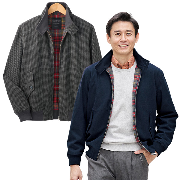 流行を越えて支持され続けるブルゾンの基本型スイングトップ。裏地にチェック柄を使ったトラディショナルなデザインです。