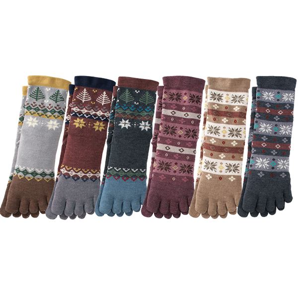 足元ぬくぬく「カポック」素材の5本指ソックス! 可愛いノルディック柄の6足組。 口ゴムゆったりで優しい履き心地。 【天然繊維「カポック」】 耐久性・弾力性があり、中空構造で吸湿性・保温性に優れ、ソフトで滑らかな肌触り。