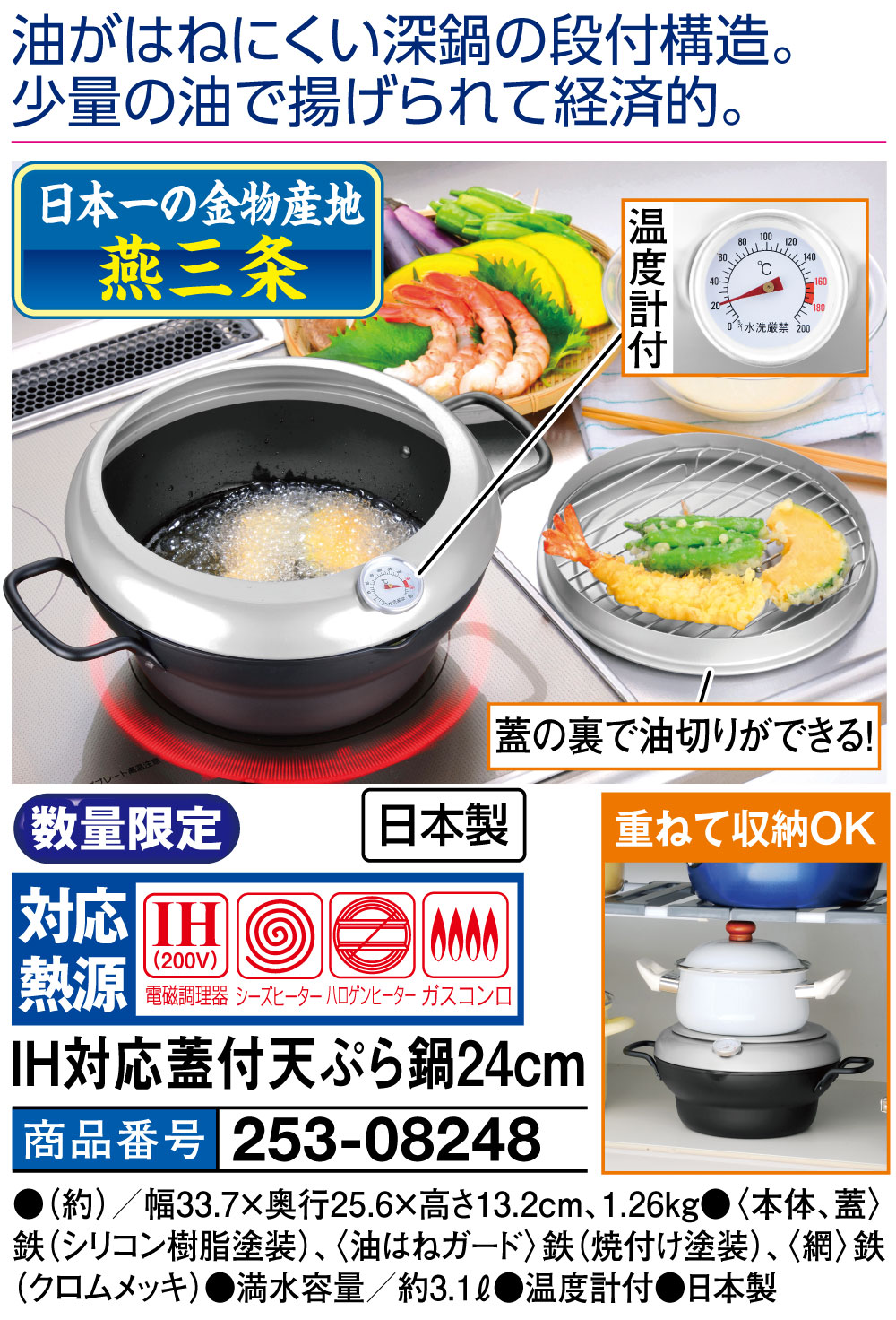 油がはねにくい深鍋の段付構造!少量の油で揚げられて経済的! 温度計付 蓋の裏で油切りができる! 重ねて収納OK 【対応熱源】 電磁調理器・シーズヒーター・ハロゲンヒーター・ガスコンロ ●日本一の金物産地:燕三条