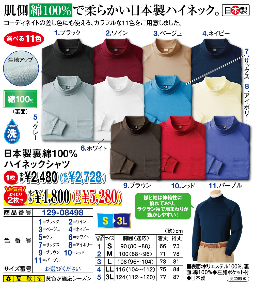 重ね着にも重宝する、サラッとソフトな日本製ハイネック!