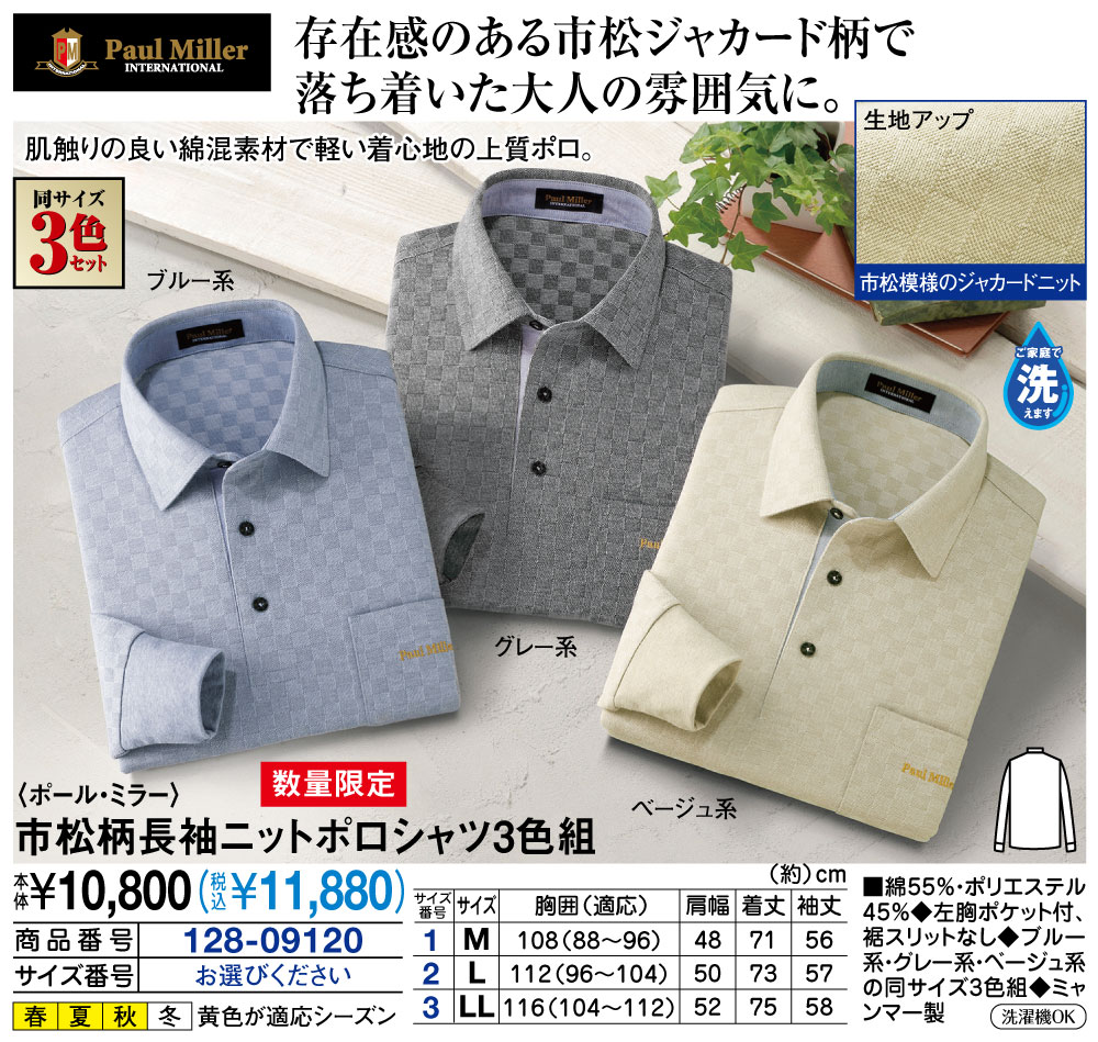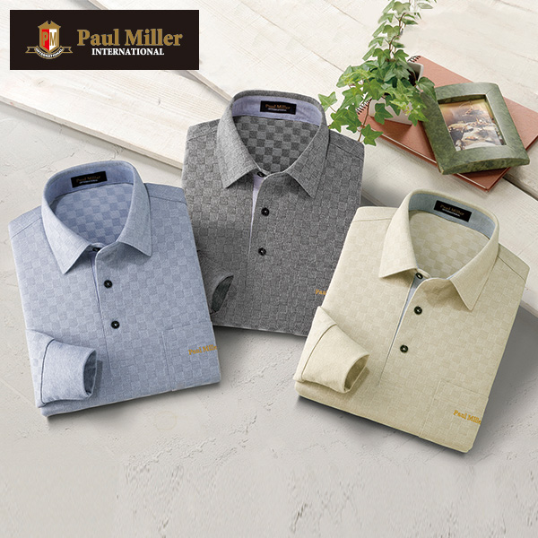 存在感のある市松ジャカード柄で落ち着いた大人の雰囲気に! 肌触りの良い綿混素材で軽い着心地の上質ポロ。 市松模様のジャカードニット ●同サイズ3色セット