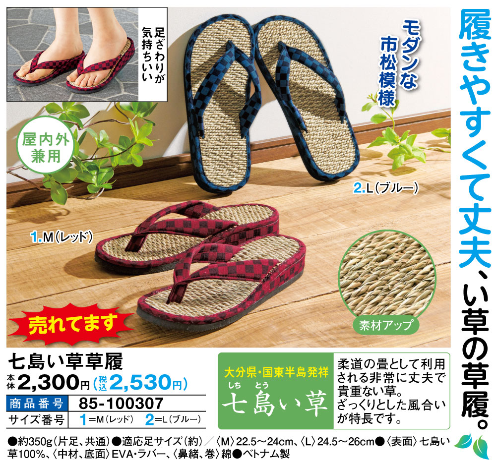 ●<表面>七島い草100%、<中材、底面>EVA・ラバー、<鼻緒、巻>綿