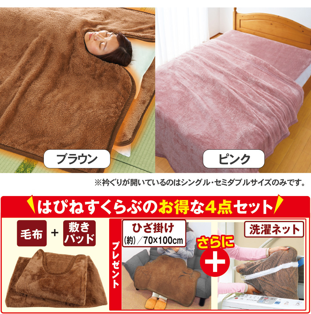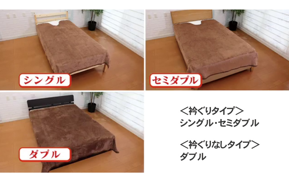 ※衿ぐりが開いているのはシングル、セミダブルサイズのみです。 ※ダブルは襟ぐりなしで長方形の毛布です。 ※乾燥機は使えません。熱で毛先がかたくなる場合があります。 ※シングルサイズのみ「よりどり2セット」が選択できます。