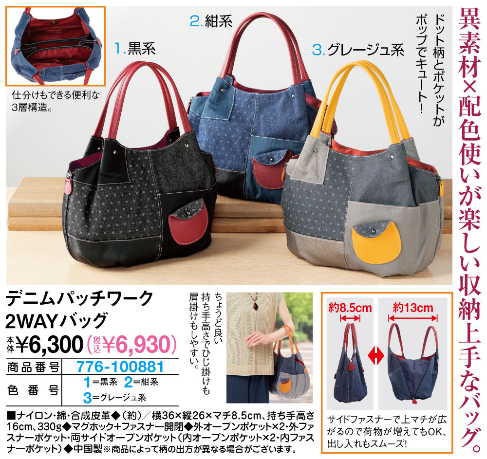 サイドファスナーで上マチが広がるので荷物が増えてもOK、出し入れもスムーズ!