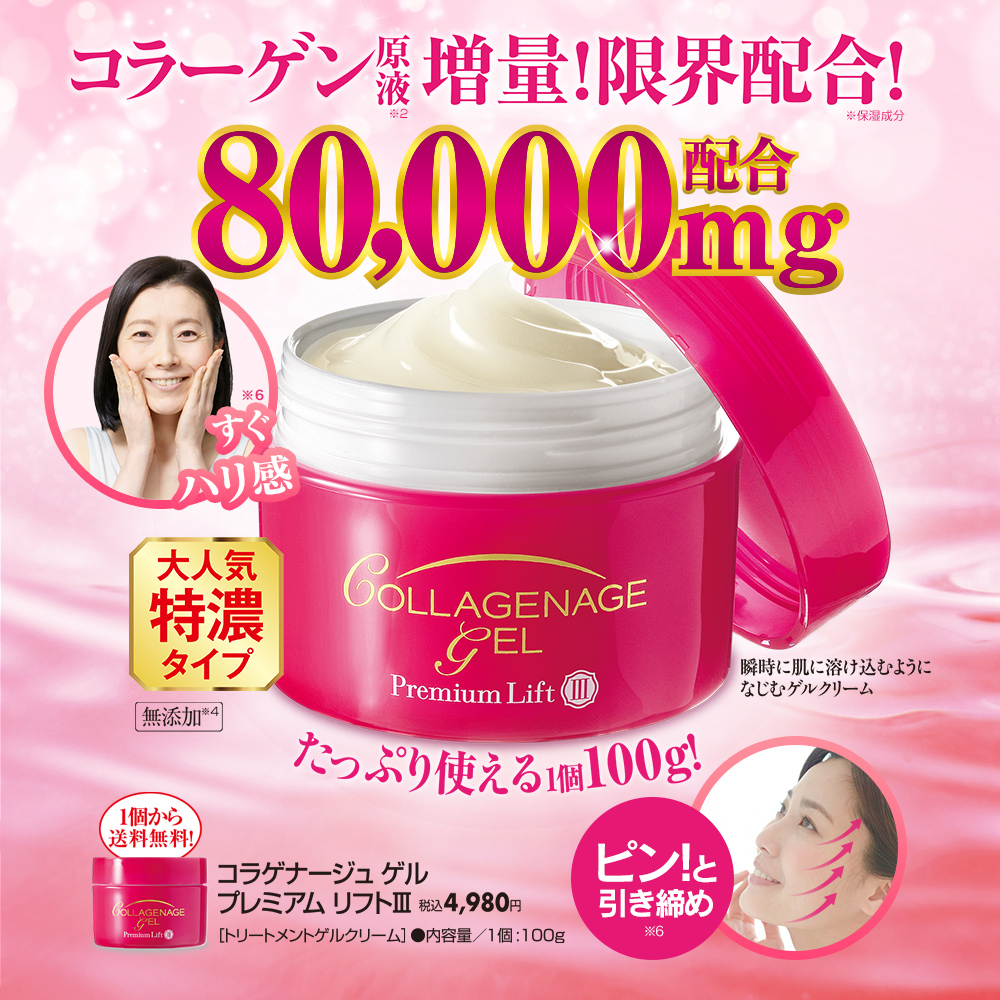 【ハリ不足】【乾燥】【年齢サイン】 大人気「コラゲナージュ ゲル プレミアム リフトⅡ」がさらにパワーアップ! ◎コラーゲン原液(※2) 80,000mg配合! ◎10種のコラーゲン! ◎塗った瞬間からピーンと密着! ◎肌にうれしい成分合計64種配合! ◎1品8役オールインワン!これひとつで充実ケア! ◎たっぷり使える1個100g!(約1.5ヵ月分)