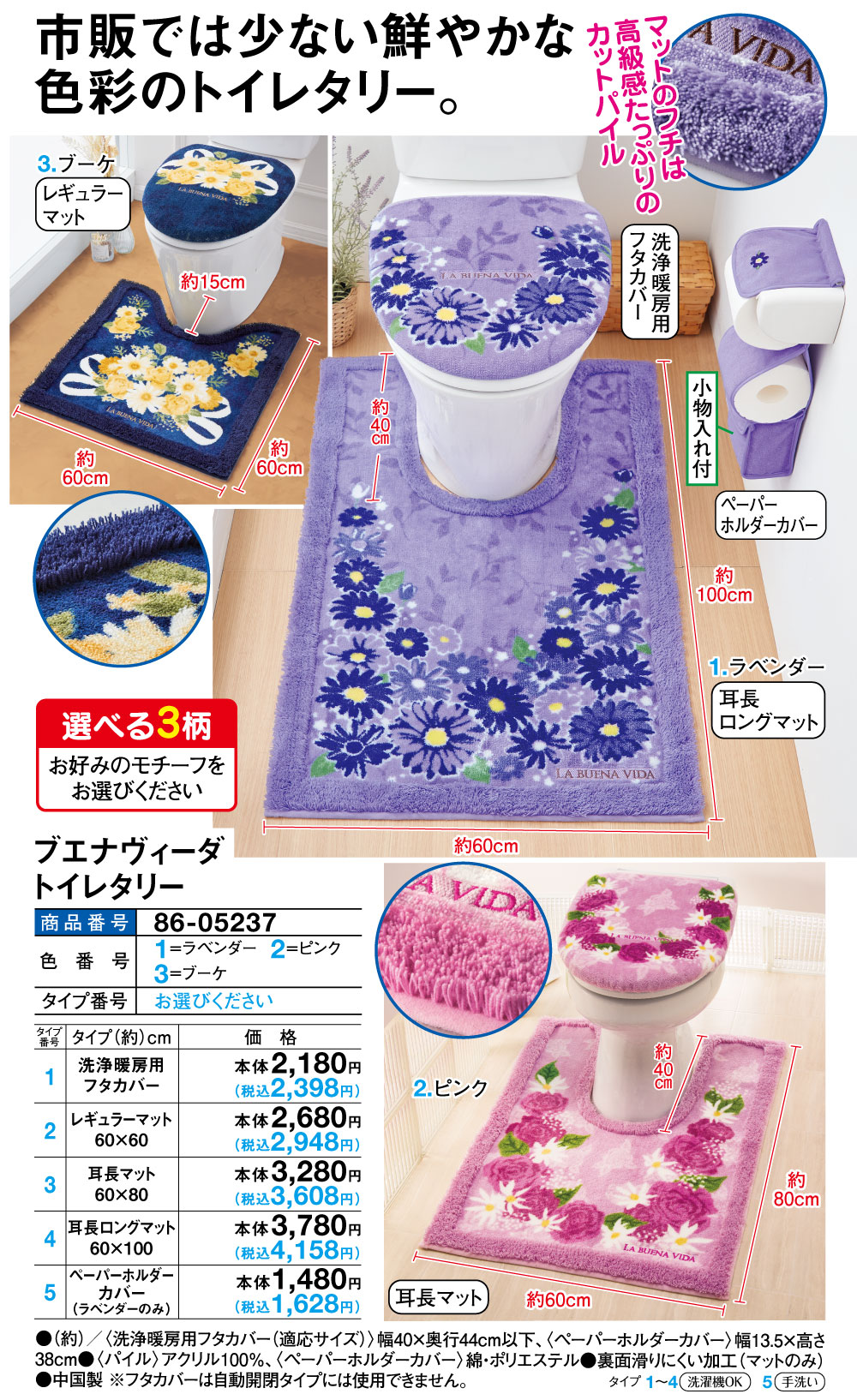 ●<パイル>アクリル100%、<ペーパーホルダーカバー>綿・ポリエステル