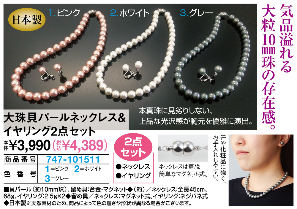 ◆留め具/ネックレス:マグネット式、イヤリング:ネジバネ式