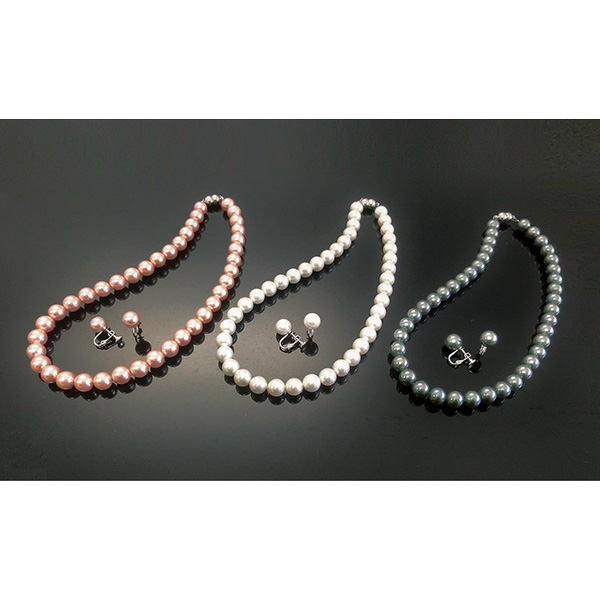本真珠に見劣りしない、上品な光沢感が胸元を優雅に演出。