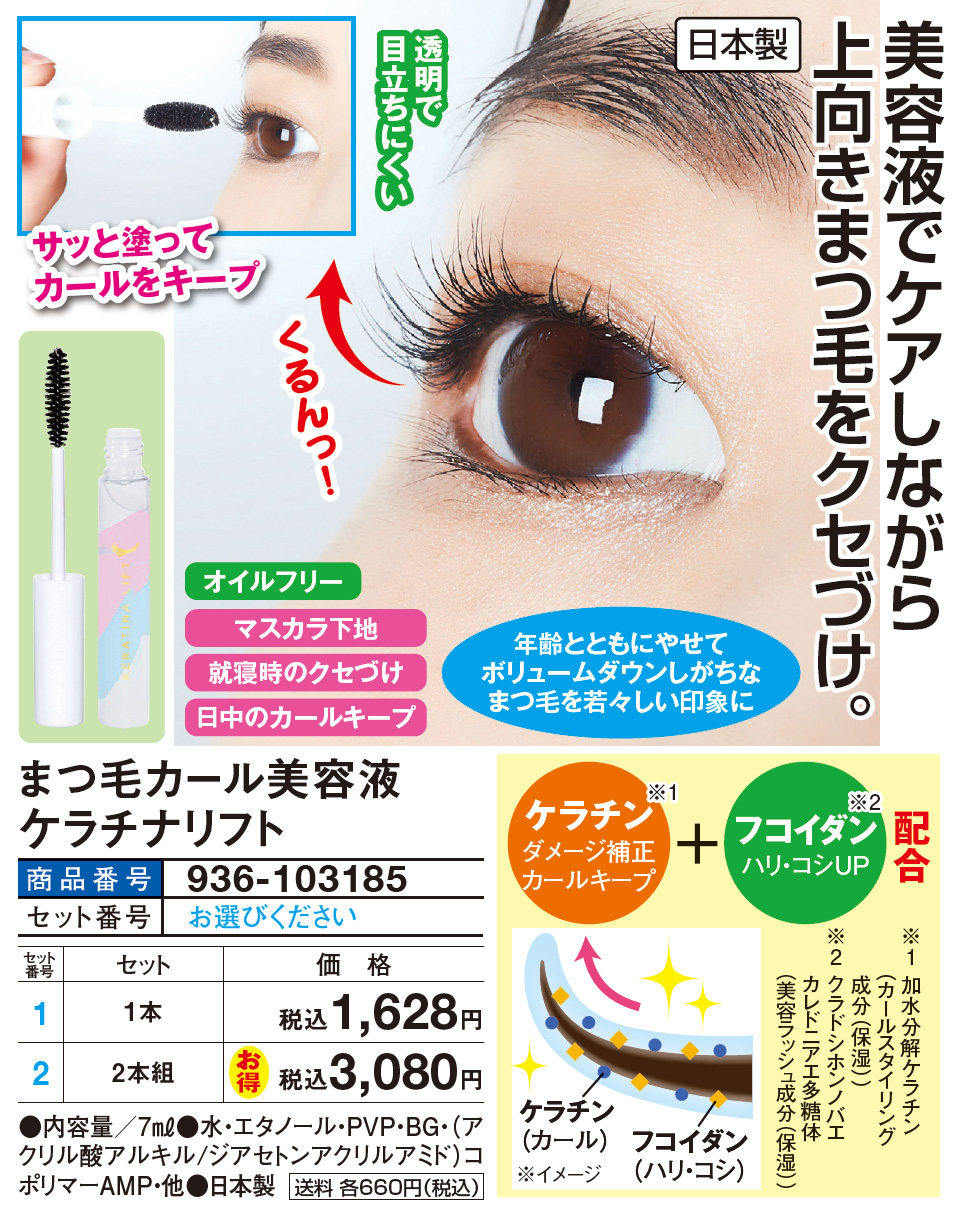◎美容液でケアしながら上向きまつ毛をクセづけ ◎透明で目立ちにくい ◎サッと塗ってカールをキープ ◎オイルフリー ◎マスカラ下地に! ◎就寝時のクセづけ日中のカールキープ! ◎日中のカールキープ!