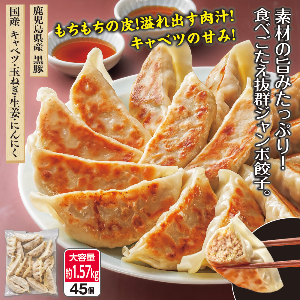 柔らかい肉質で歯切れの良さ、深い旨みが特長の鹿児島県産黒豚を100%使用したこだわりの大粒餃子。 もちもちの皮!溢れ出す肉汁! キャベツの甘み! ◎鹿児島県産 黒豚使用 ◎国産 キャベツ・玉ねぎ・生姜・にんにく使用