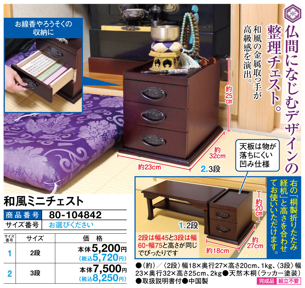 「桐製折りたたみ経机」と高さを合わせてお使いいただけます。