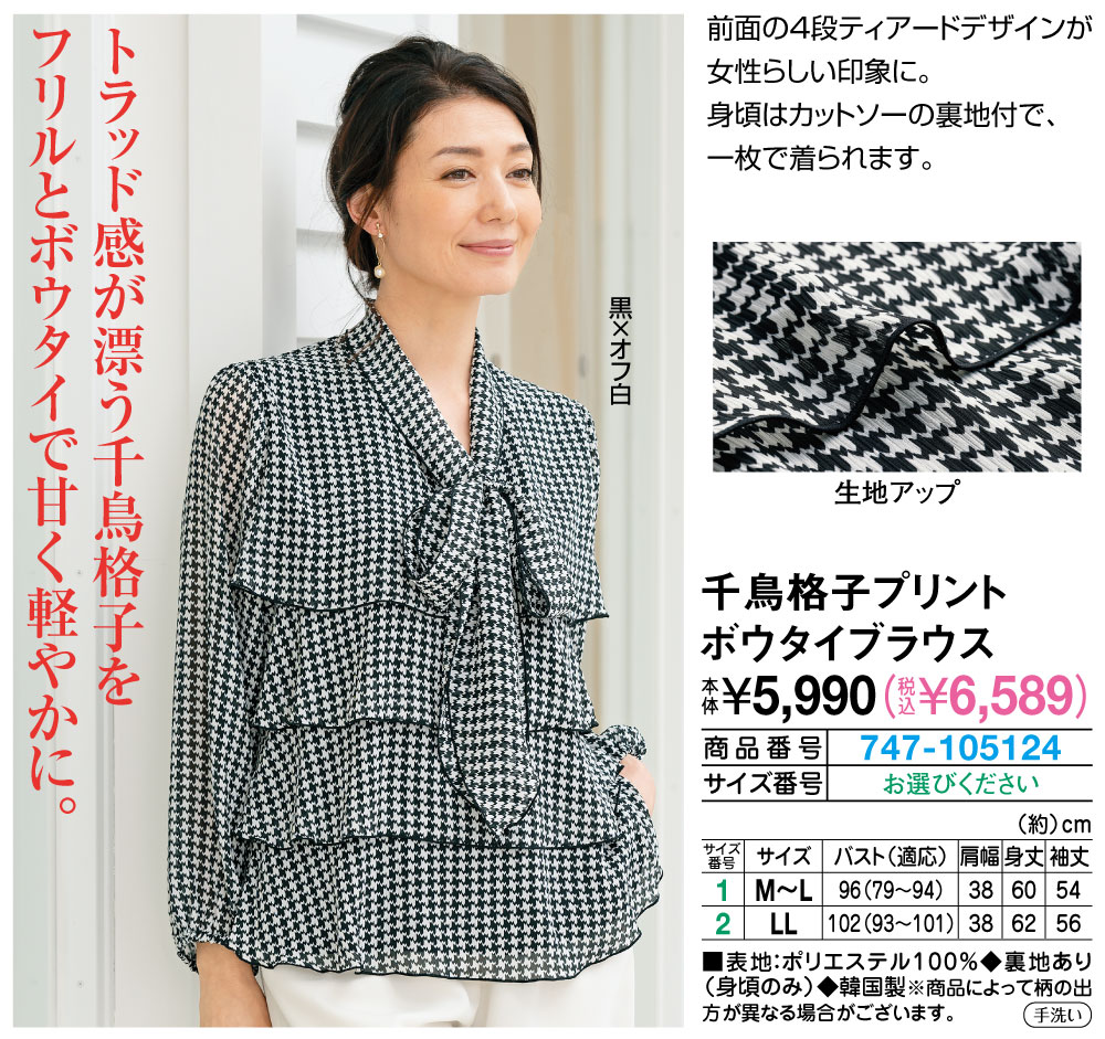 トラッド感が漂う千鳥格子をフリルとボウタイで甘く軽やかに!