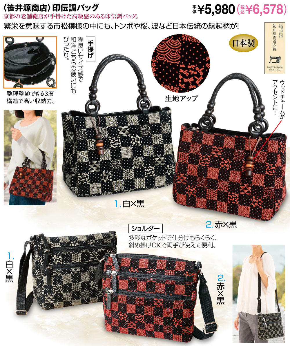 京都の老舗鞄店が手掛けた高級感のある印伝調バッグ。