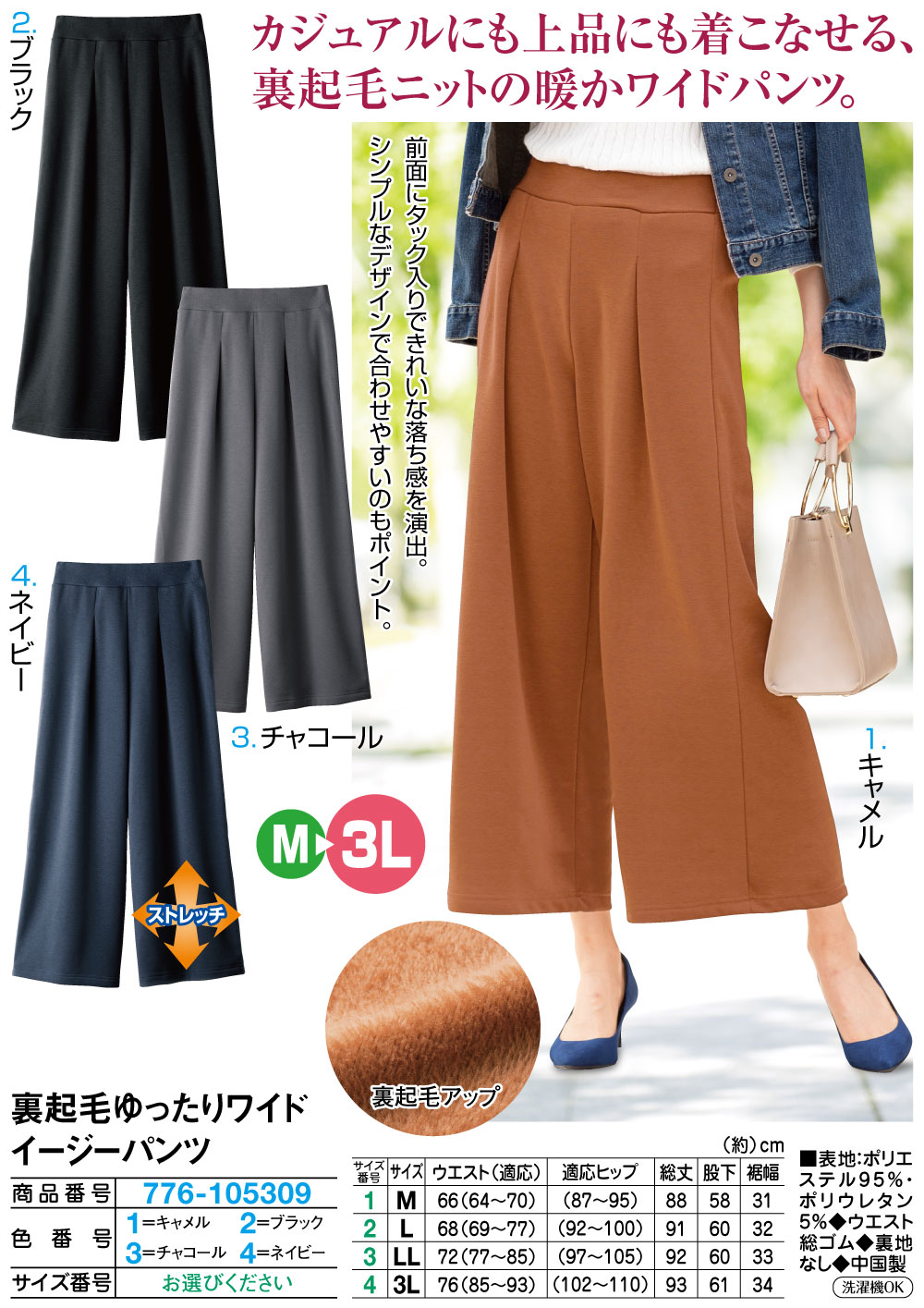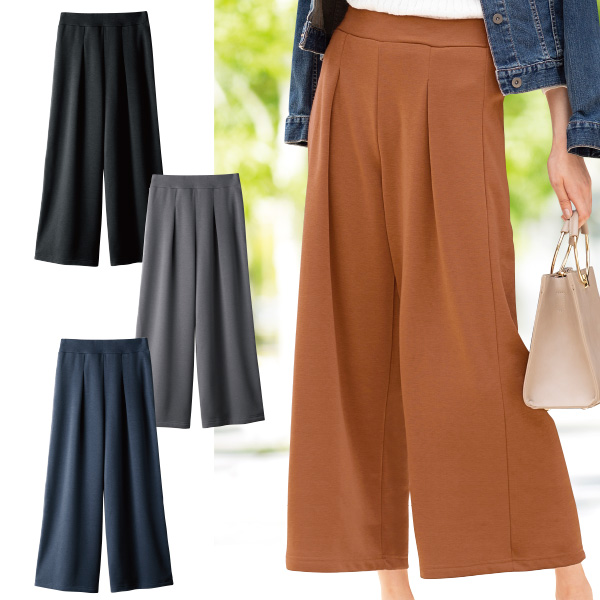 カジュアルにも上品にも、裏起毛ニットの暖かワイドパンツ!