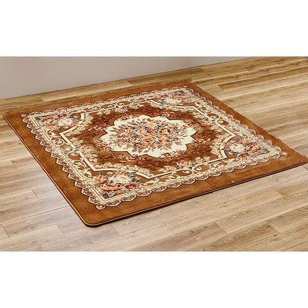 立体カービング加工が美しいふっくらボリュームの上質ラグ! ●ボリュームラグ 高級感あふれる美しい花柄。ホットカーペット、床暖房対応。 【立体カービング加工】 柄がくっきり浮き出る立体感のある仕上げ。 約1cm厚のウレタン入りで床からの冷えを遮断。 表面は長めの毛足で、ふかふか快適な踏み心地。 踏み心地の良いふっくら3層構造。 裏面は滑りにくい加工。