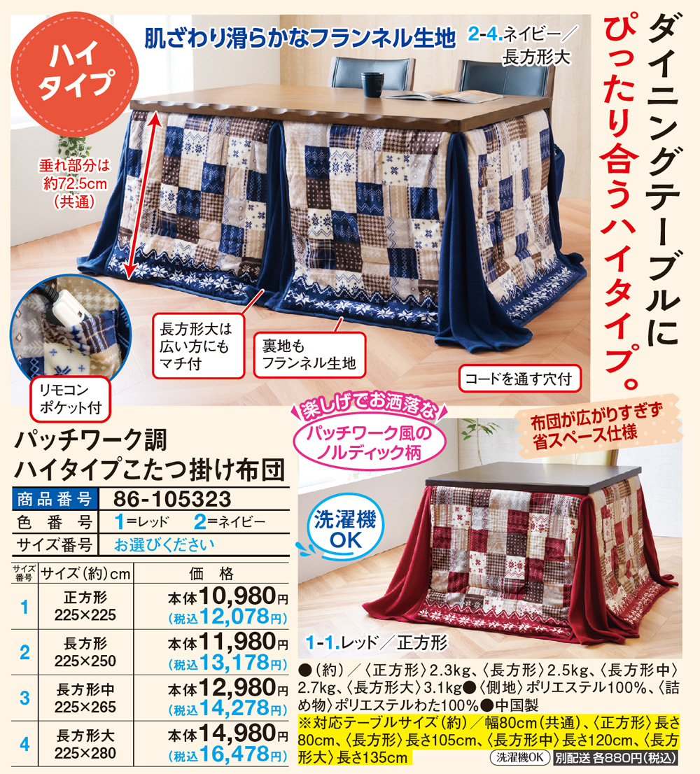 パッチワーク調ハイタイプこたつ掛け布団