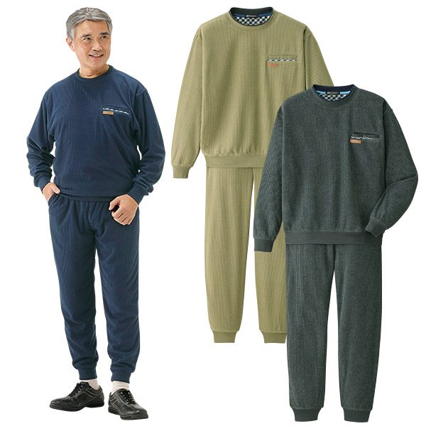 ワッフル仕立てのフリース素材を使用、裏起毛のホームウェア!