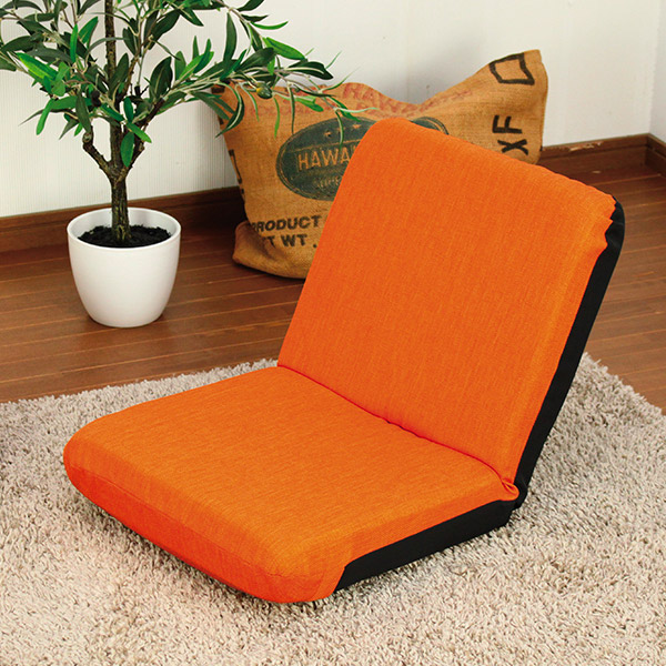 こたつにもおすすめ!ミニサイズのリクライニング座椅子! あぐらをかきやすいサイズ感! 5段階リクライニング ●耐荷重約100kg ●軽量約2kg ●選べる3色(オレンジ、グリーン、ブラウン)