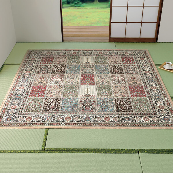高密度な織による滑らかな肌ざわりのカーペット。繊細な模様が美しく、耐久性にも優れています。