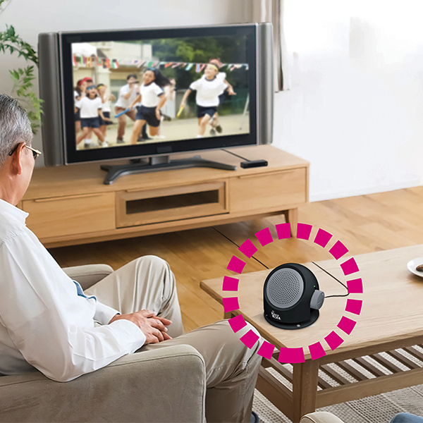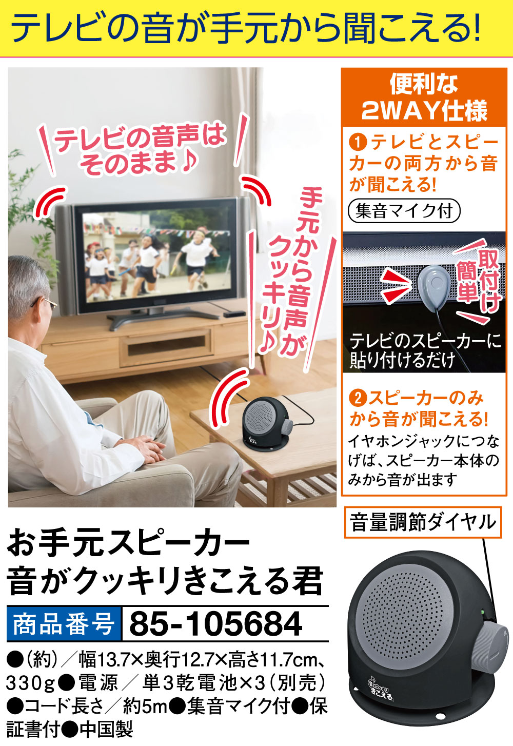 テレビの音が近くで聞こえる取付けも簡単な手元スピーカー! テレビの音声はそのまま♪ 手元から音声がクッキリ♪ 【便利な2WAY仕様】 1.テレビとスピーカーの両方から音声が聞こえる! (集音マイク付)テレビのスピーカーに貼り付けるだけ! 2.スピーカーのみから音が聞こえる! イヤホンジャックにつなげば、スピーカー本体のみから音が出ます ・音量調節ダイヤル