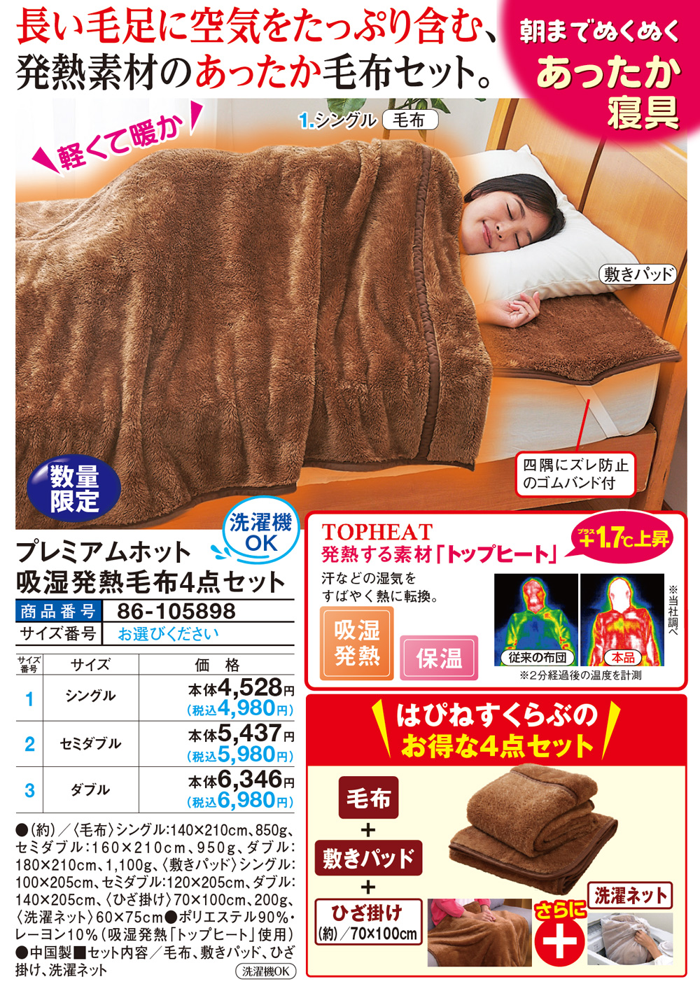 ■セット内容/毛布、敷きパッド、ひざ掛け、洗濯ネット