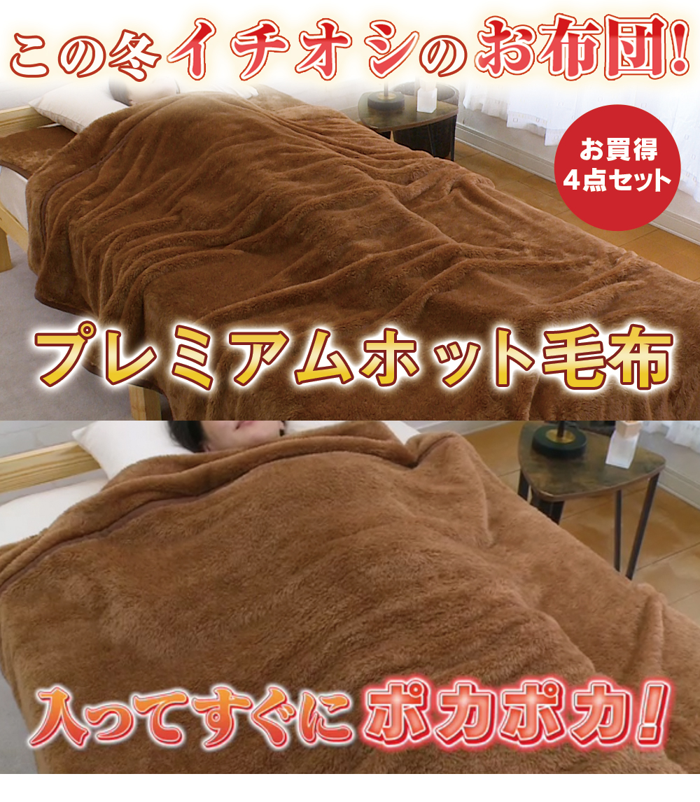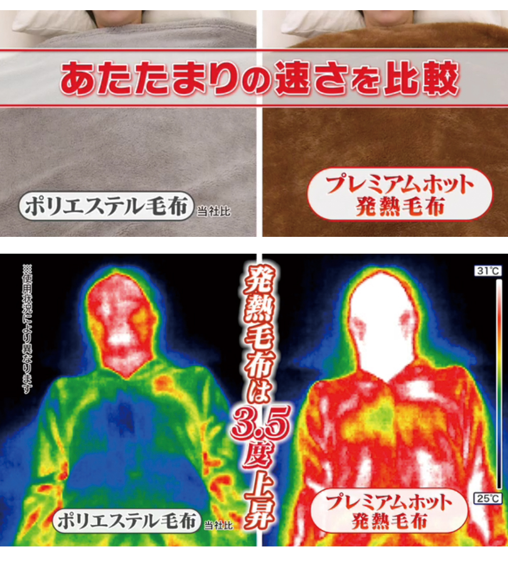 空気をたっぷり含む、発熱素材のあったか毛布セット!
