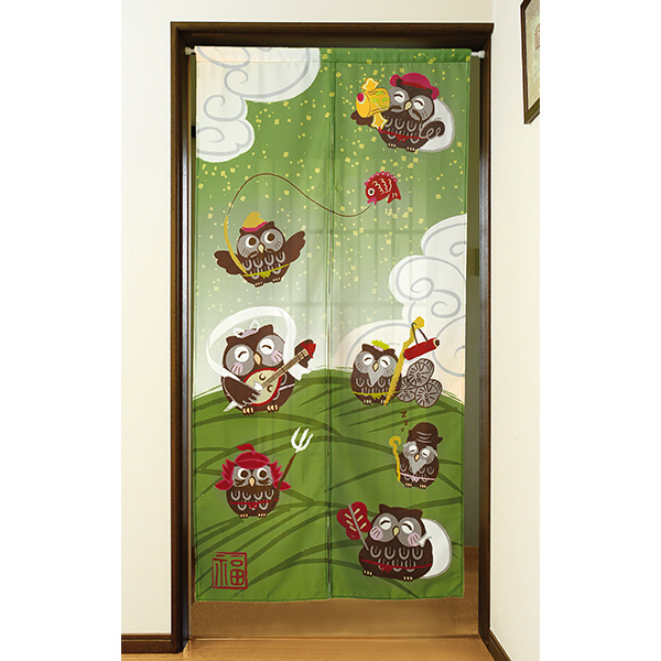 お部屋に合わせて選べるのれん! 福を呼ぶといわれるふくろうが七福神になった縁起の良いのれんです。 ●新柄 ●丈約170cmのロングタイプ