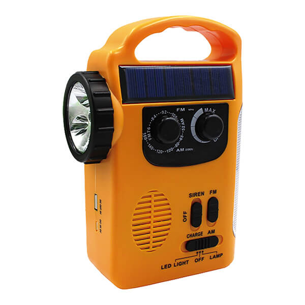 スマホの充電もできる!多機能ラジオ! アウトドアにも 手回し充電で緊急時も使える 【USBポート】 市販のUSB充電ケーブルで携帯電話・スマホに充電可能! ●ソーラー充電 ●選局ダイヤル ●サイレン/充電切替スイッチ ●AM/FM切替スイッチ(ワイドFM対応) ●LEDライト ●ライト切替スイッチ ●LEDランタン