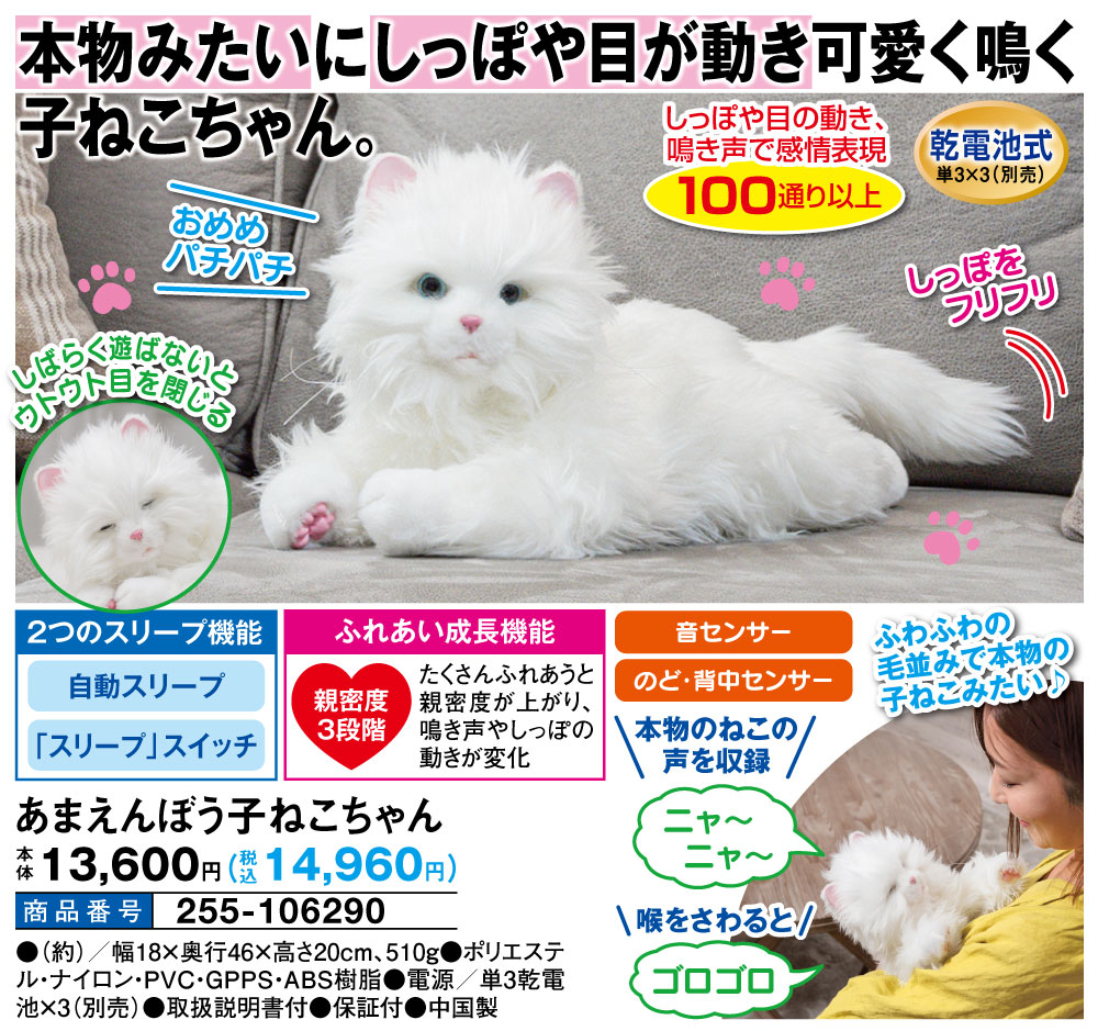 本物みたいにしっぽや目が動き可愛く鳴く子ねこちゃん!