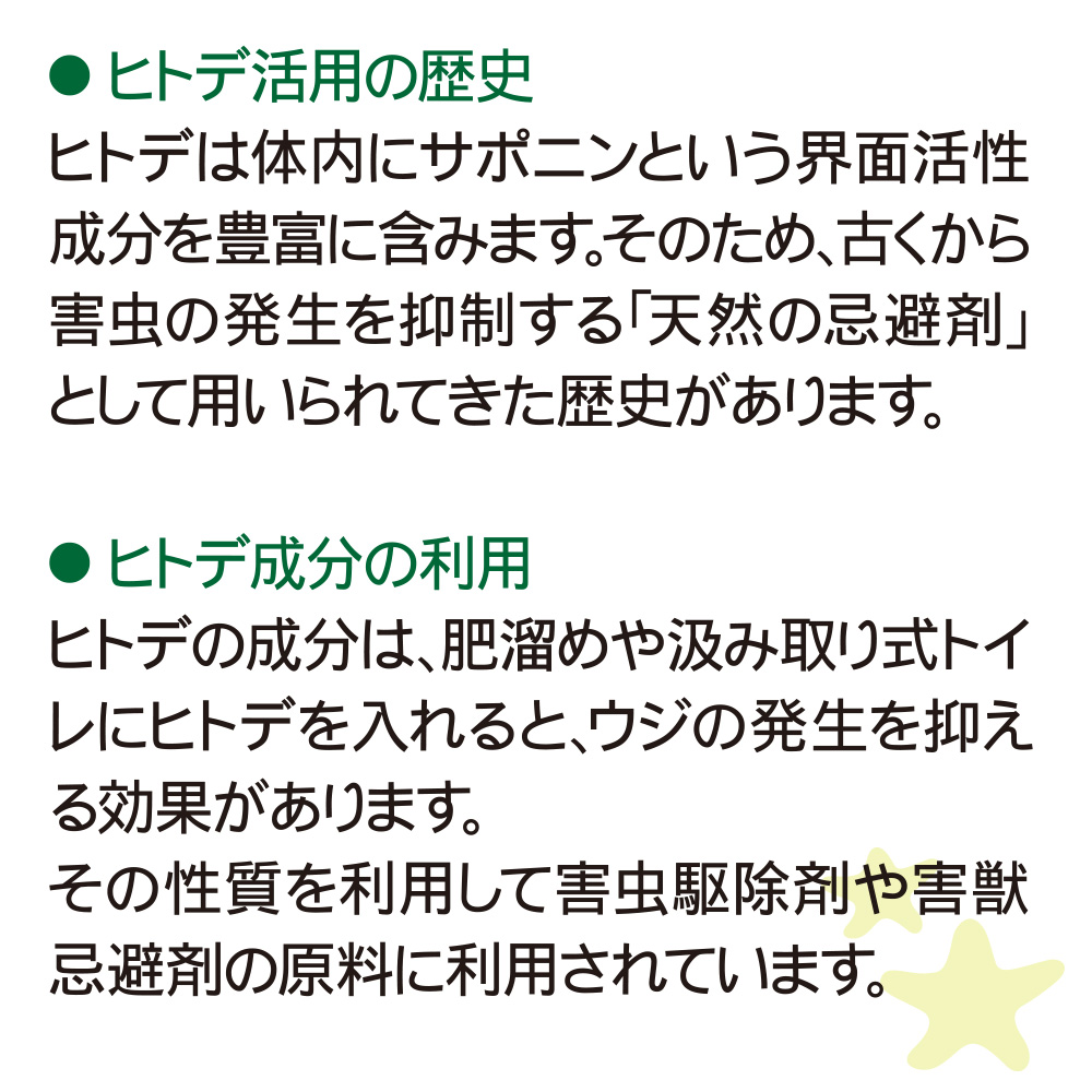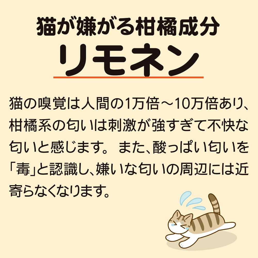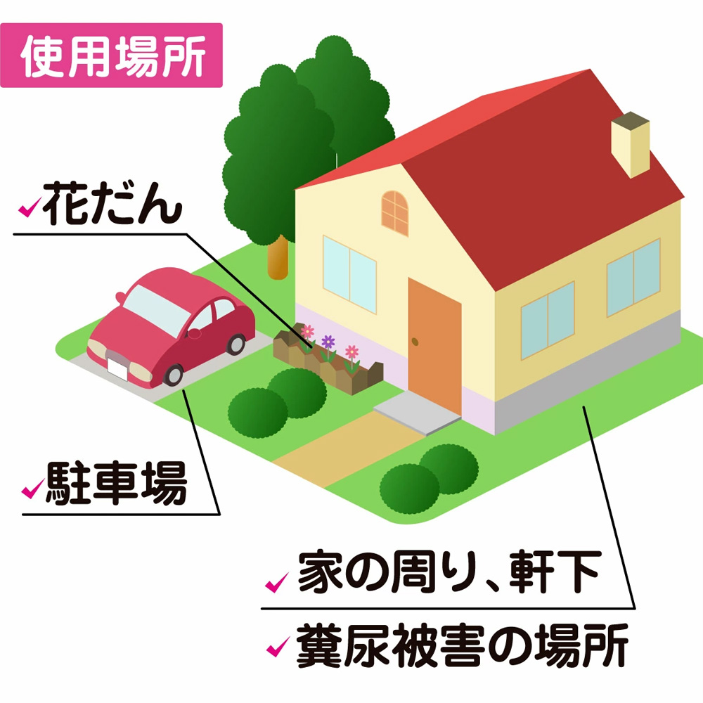 ヒトデサポニン×柑橘リモネン 猫が嫌がる柑橘成分とヒトデ成分! 花壇や玄関・駐車場など、糞尿被害の場所にまき、霧吹きなどで軽く湿らせてください。 ◎化学物質不使用 ◎各種検査済み(経口毒試験、肥料成分・重金属検査)
