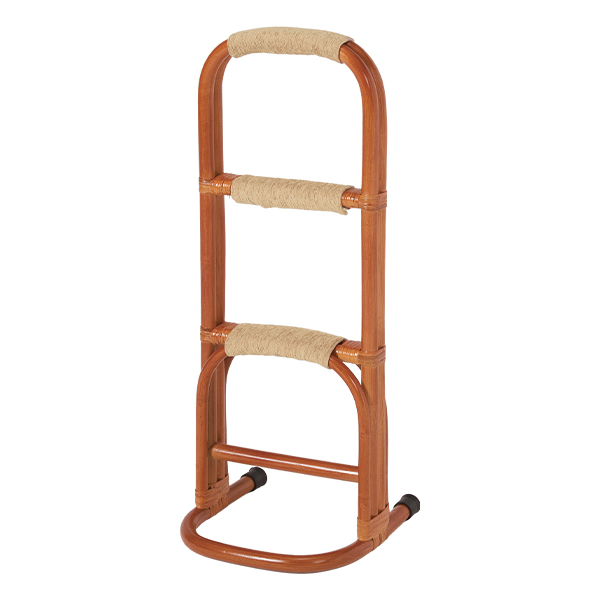 しっかり握れて立ち座りが楽になるステッキ! ひざや腰への負担を和らげ、楽に立ち上がれます。 3段階ある手すりで立ち上がりをサポート 持ち手は握り心地が優しい布地。(着脱でき洗濯もOK) ラバーキャップで滑りにくい ●軽量:持ち運びラクラク