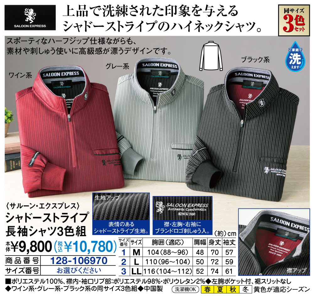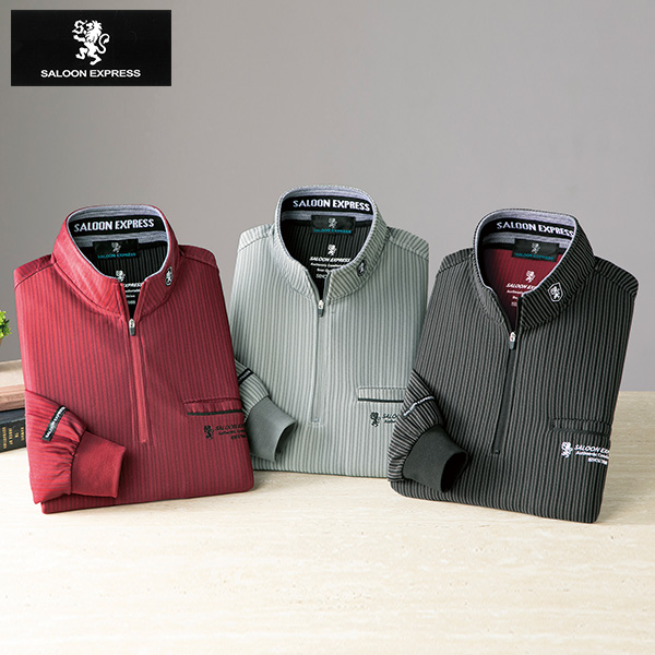 シャドーストライプが高級感漂う長袖&7分袖ハーフジップシャツ! 表情のあるシャドーストライプ生地。 襟・左胸・右袖にブランドロゴ刺しゅう入。 ●7分袖 ●長袖(リブ仕様) ●同サイズ各3色セット