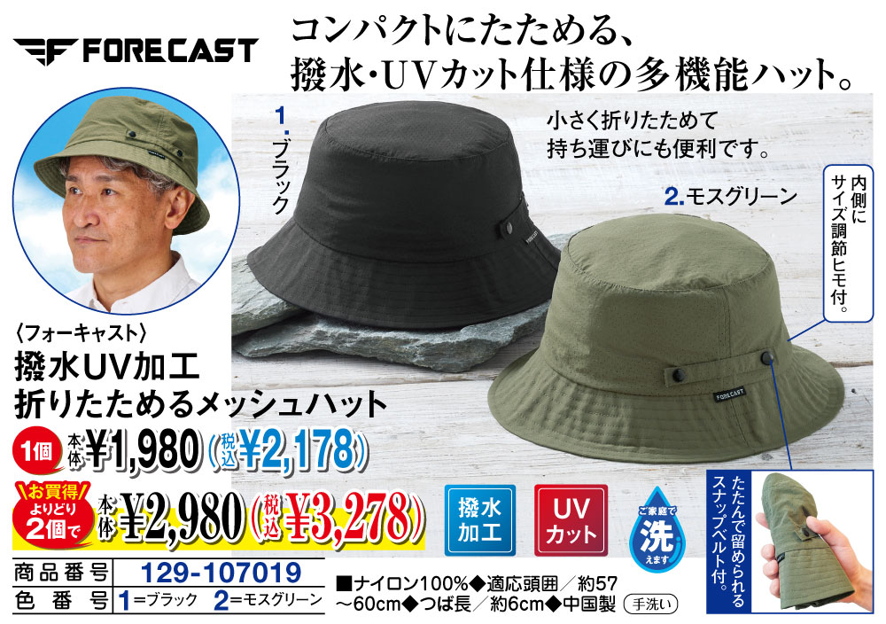 フォーキャスト 撥水UV加工折りたためるメッシュハット